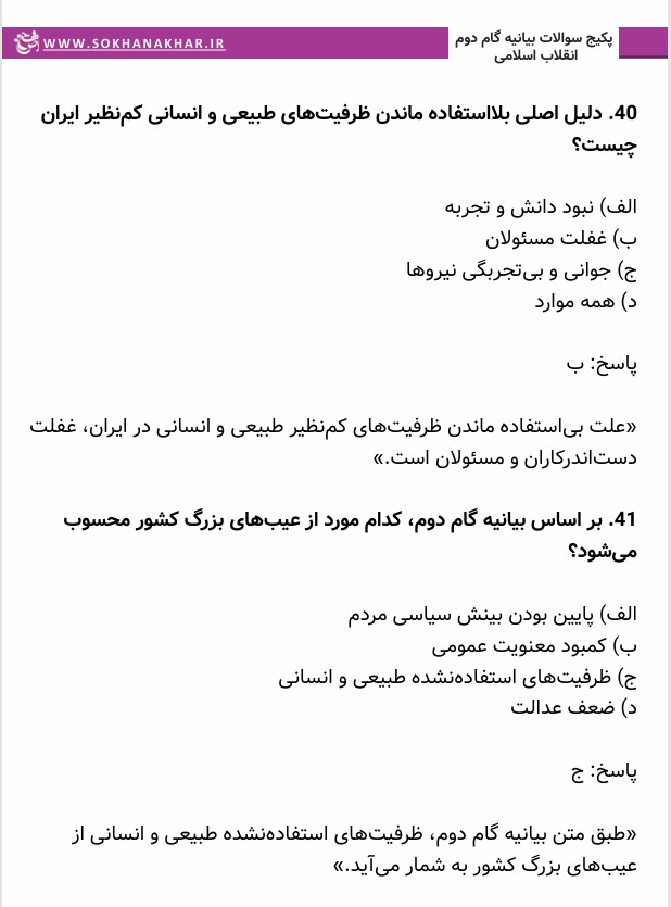 سوالات استخدامی مهم از بیانیه گام دوم انقلاب با پاسخ تشریحی